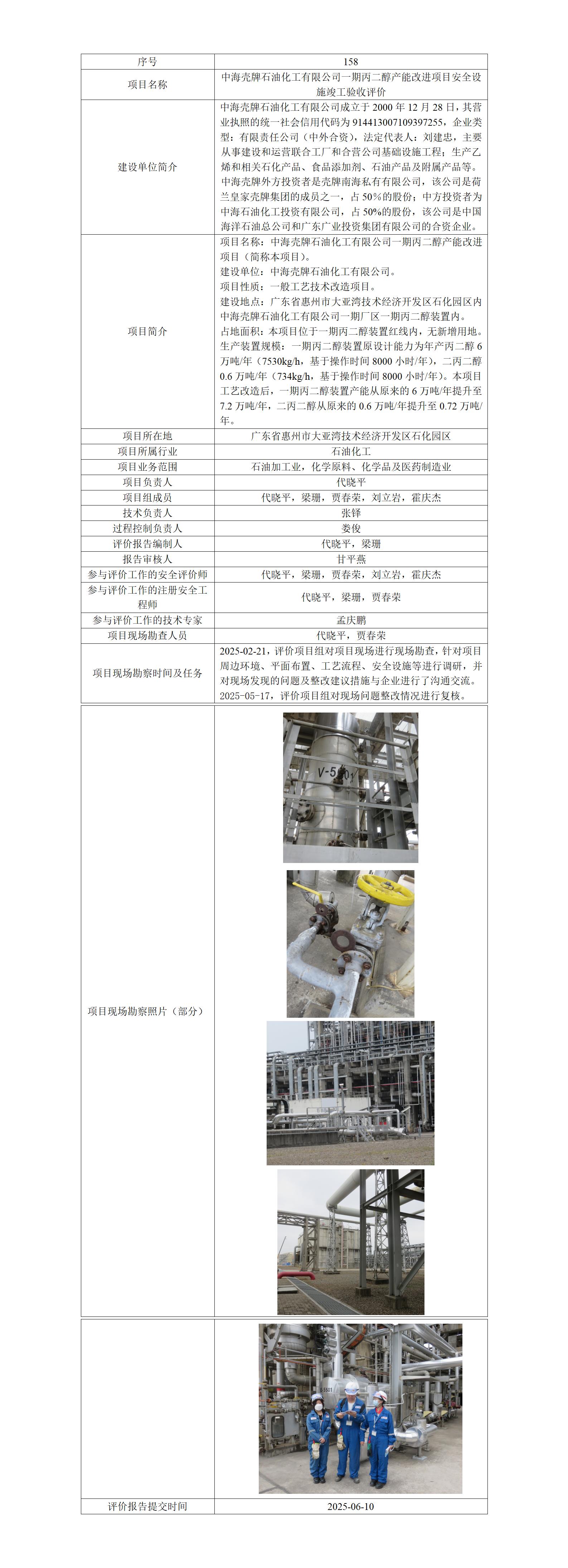 中海壳牌石油化工有限公司一期丙二醇产能改进项目安全设施竣工验收评价