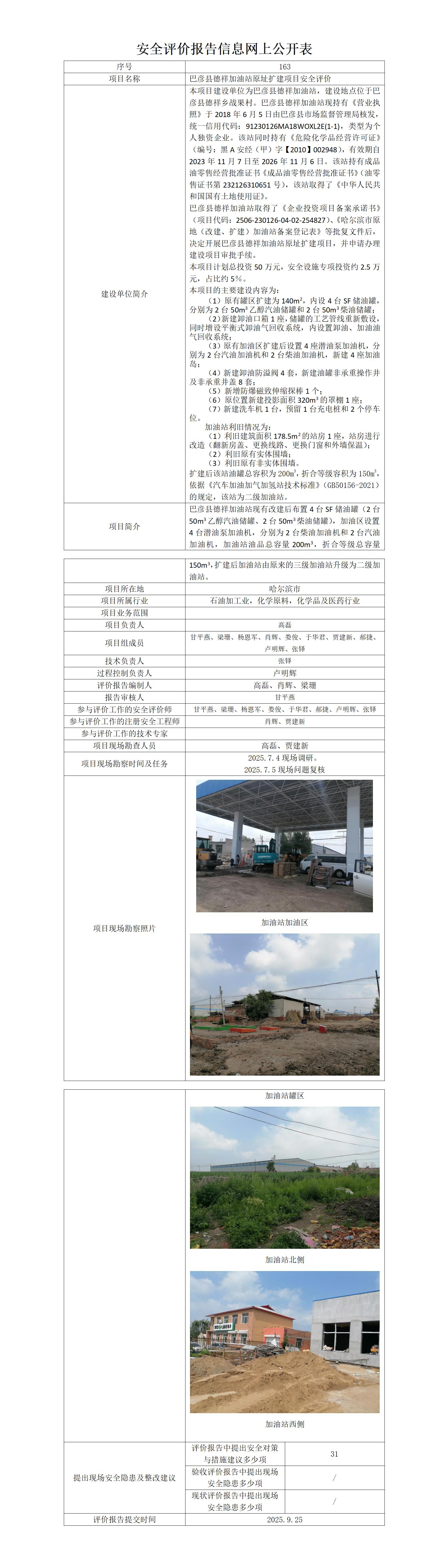 中化石油黑龙江有限公司佳木斯市红旗路加油站经营危险化学品安全现状评价