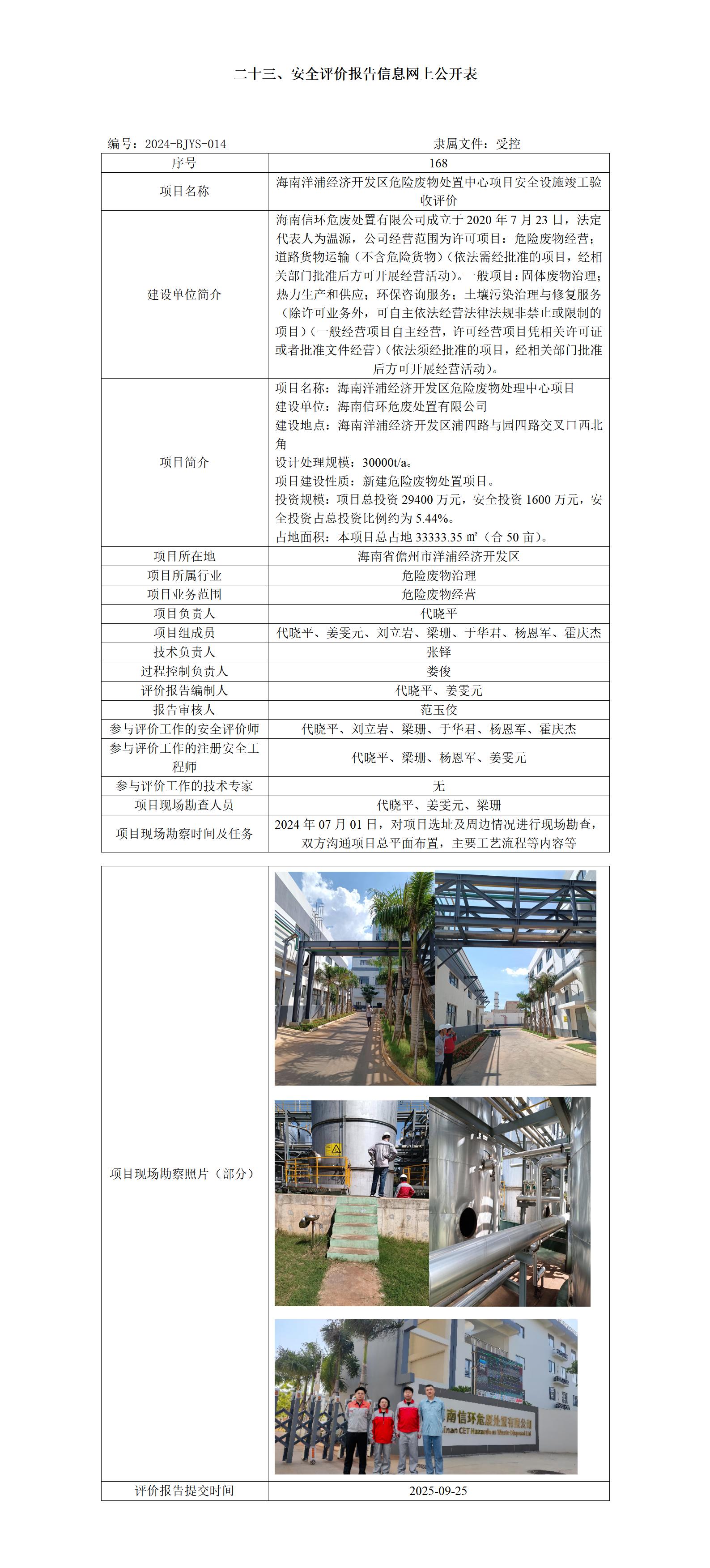 海南洋浦经济开发区危险废物处置中心项目安全设施竣工验收评价