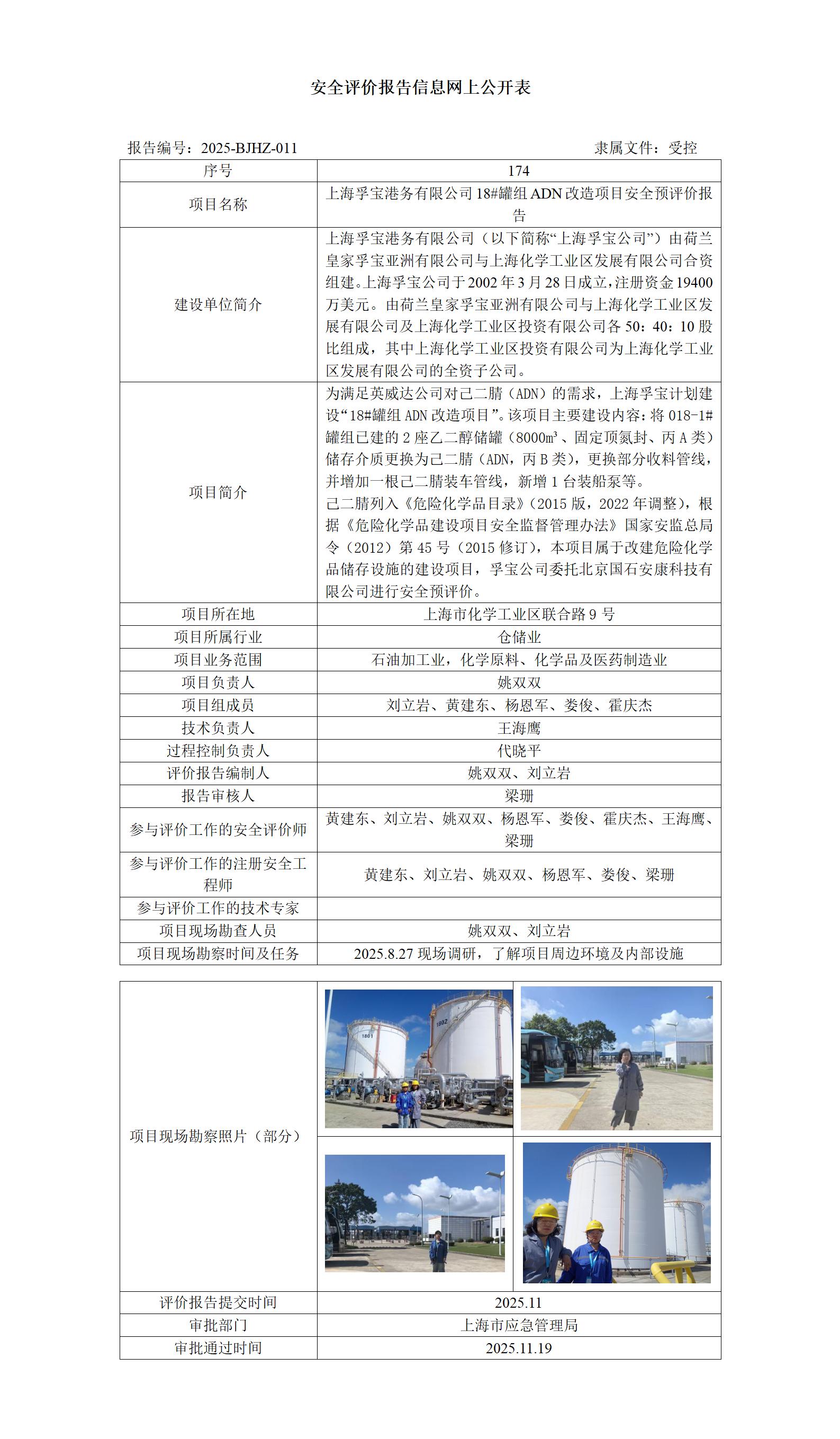 上海孚宝港务有限公司18#罐组ADN改造项目安全预评价报告