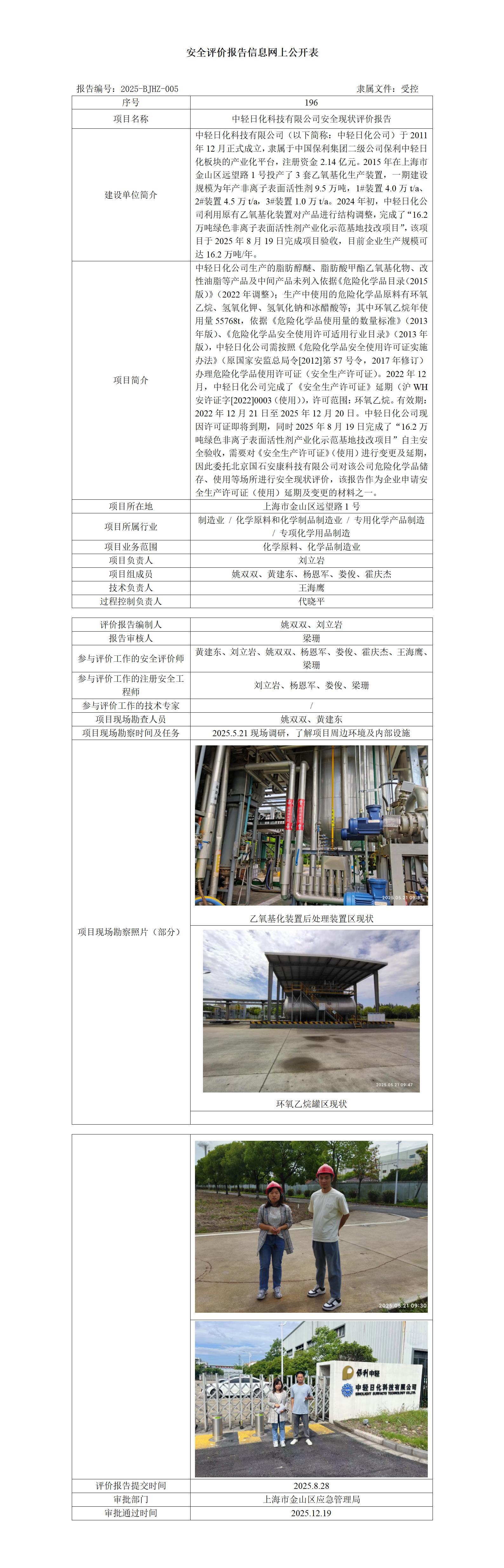 中轻日化科技有限公司安全现状评价报告