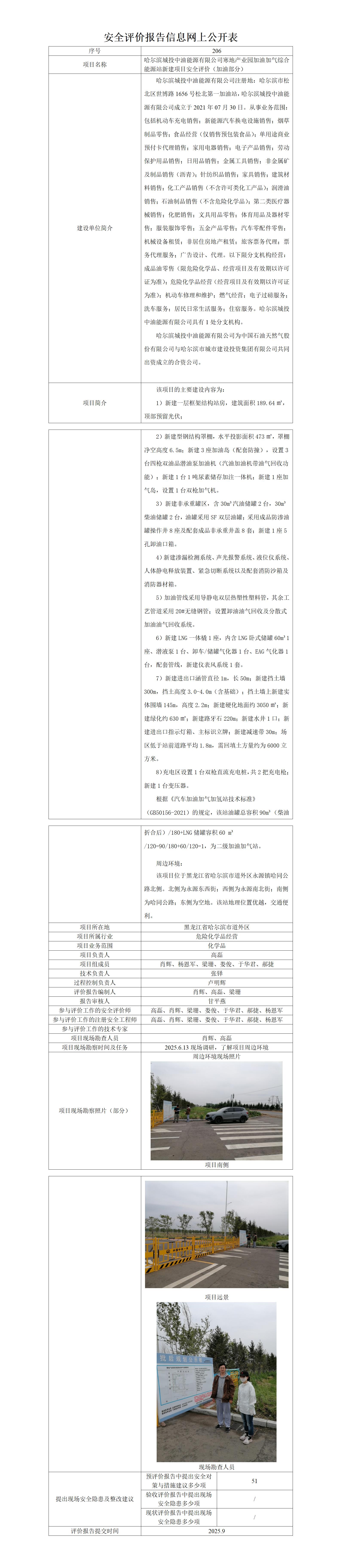 哈尔滨城投中油能源有限公司寒地产业园加油加气综合能源站新建项目安全评价(加油部分)