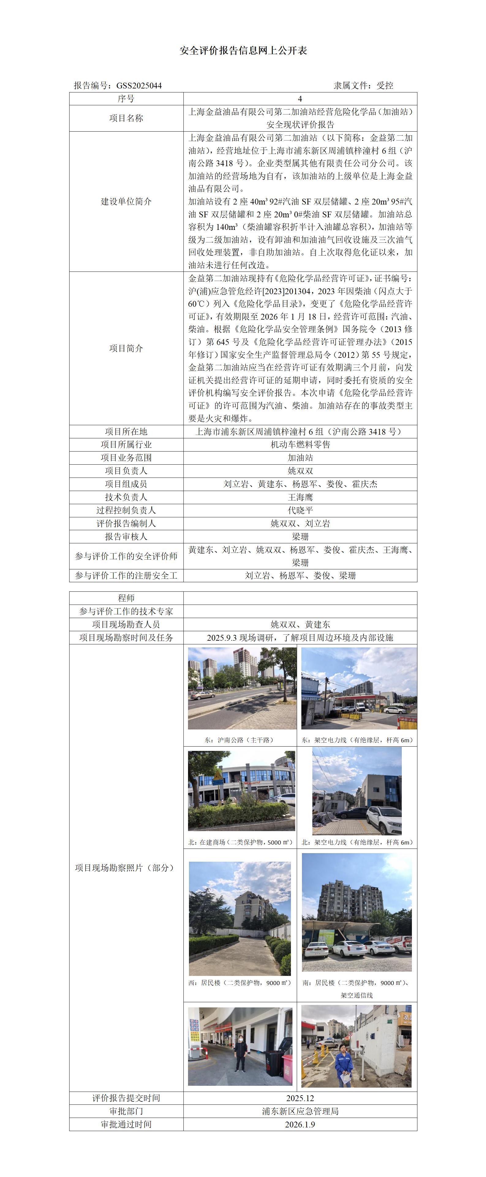 上海金益油品有限公司第二加油站经营危险化学品(加油站)安全现状评价报告