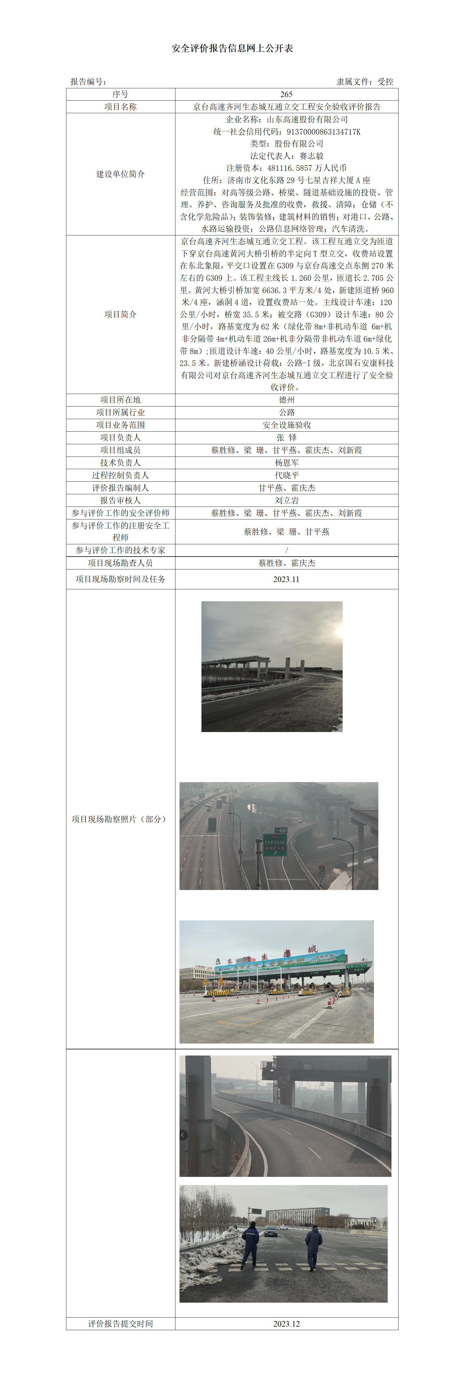 2023京台高速齐河生态城互通立交工程安全验收评价报告