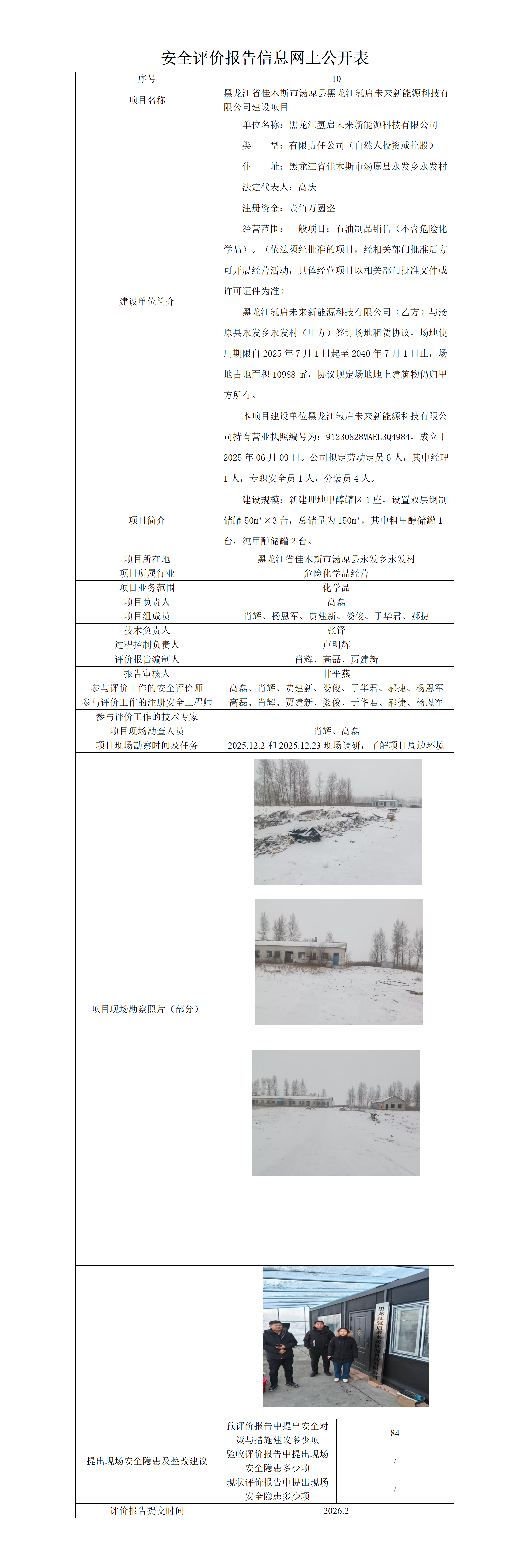 黑龙江省佳木斯市汤原县黑龙江氢启未来新能源科技有限公司建设项目